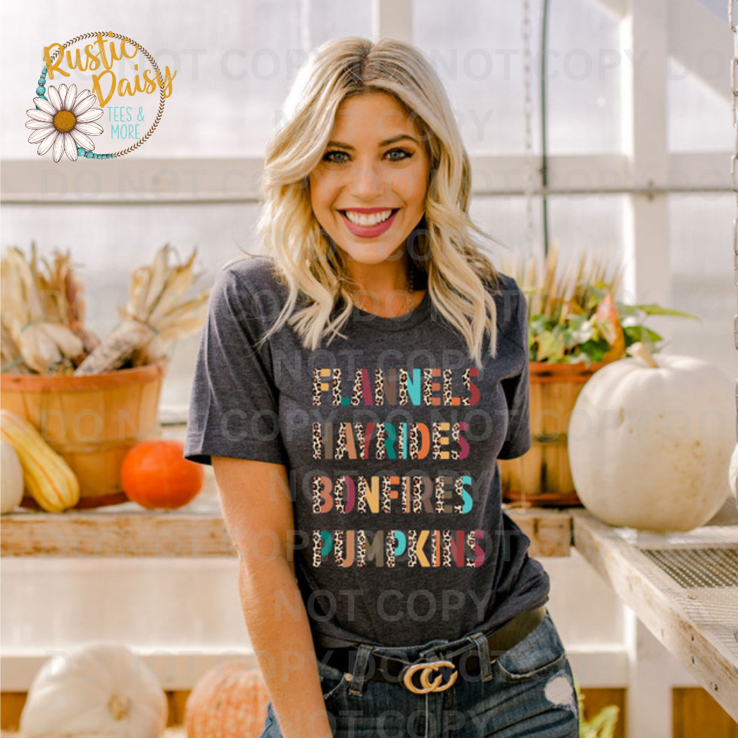 Enjoy autumn’s charm with this playful "Flannels Hayrides" tee. Its cute design captures the cozy spirit of flannel days and fun hayride memories, adding warmth and whimsy to your casual style.