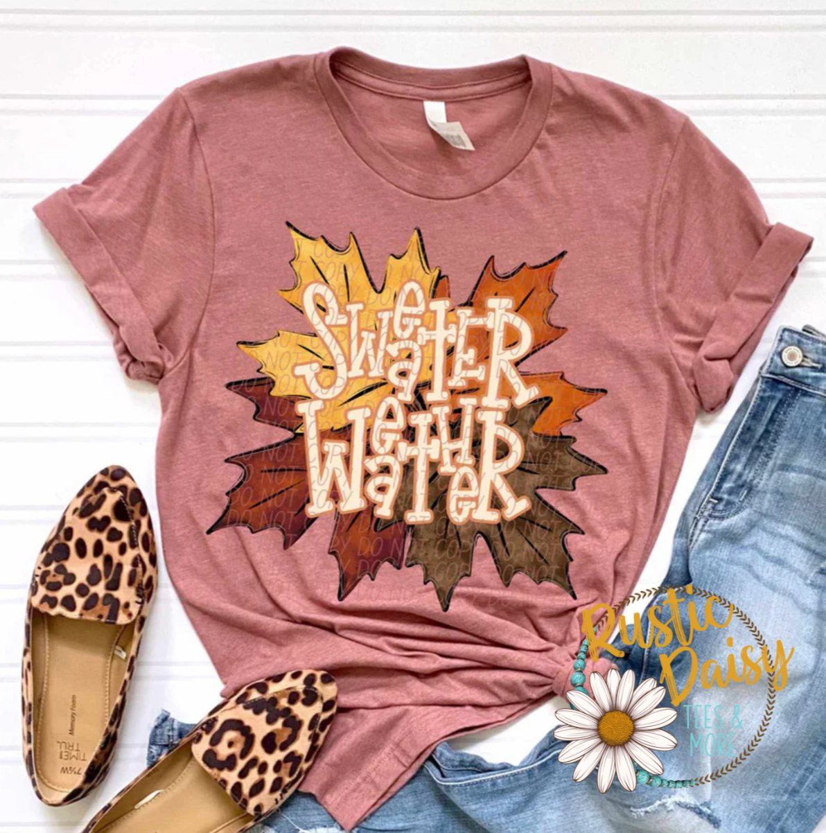 Sweater Weather Fall Leaves brings the cozy vibes of autumn to life with a fun and inviting design. Bursting with warm, colorful leaves and a snug feel, this piece perfectly captures the magic of sweater weather—making it the playful, stylish pick for your fall wardrobe.